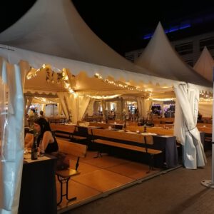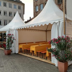 Ihre Großveranstaltung braucht die Sicherheit für alle Eventualitäten gerüstet zu sein… mit einem Zelt haben Sie den idealen Begleiter, ob als Sonnen- oder Regenschutz. Ob klassisches Zelt oder stylische Pagode oder Sternenzelt – manchmal auch für die schnelle Lösung ein Faltzelt. Gerne auch in verschiedenen Kombinationen für unterschiedliche Einsatzzwecke und Orte. Das Faltzelt für kurzfristige Lösungen oder als variabler Ausschankbereich. Im Festzelt ist jede Menge Platz für viele Gäste und die Band. Eingangsbereiche oder Anbauten für Barbereiche sind sehr schöne mit Pagodenzelten zu realisieren.